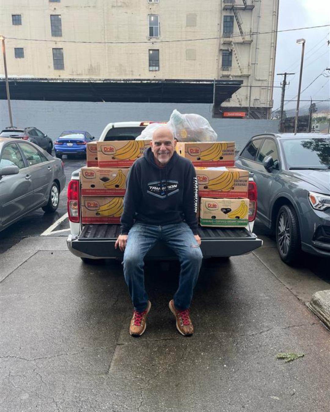 Don began rescuing food from Gus's and Farmstead, then added more routes, including the Ferry Building Farmers Market on Thursday afternoons. Nearly 13 years later, he is still going strong and now handles one of our largest donors, Trader Joe's on Masonic, every Saturday. His truck regularly carries 600 to 1200 pounds of food each week, all delivered consistently and reliably to those who need it most. One of his favorite stops is Pine Street Community, where he delivers to seniors and enjoys talking football with Albert and Billy. Although Don is a devoted Steelers fan, he somehow makes it work.